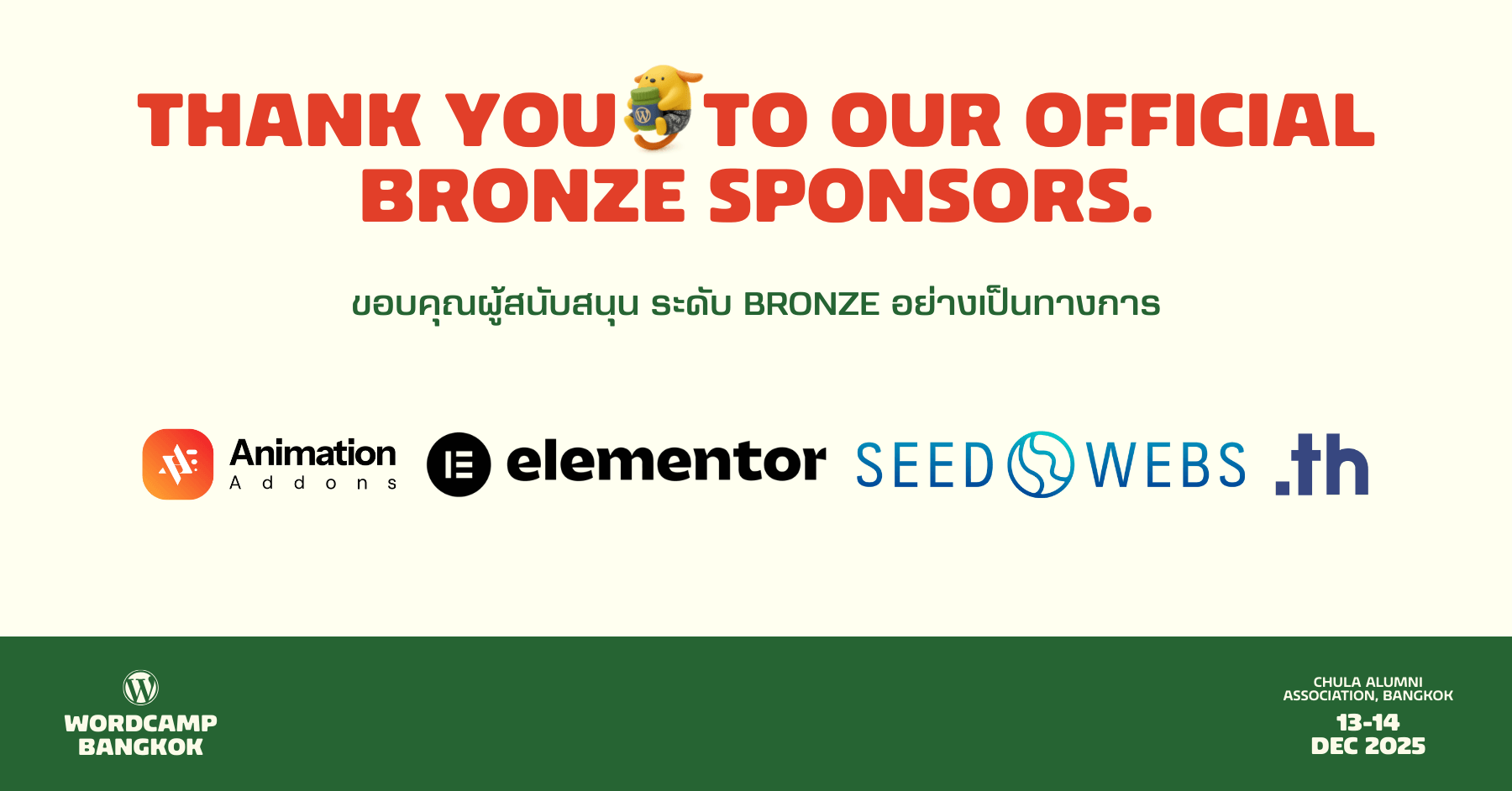 The WordCamp Bangkok 2025 Organizing Team is delighted and would like to thank all sponsors who have played a vital role in making WordCamp Bangkok 2025 happen.